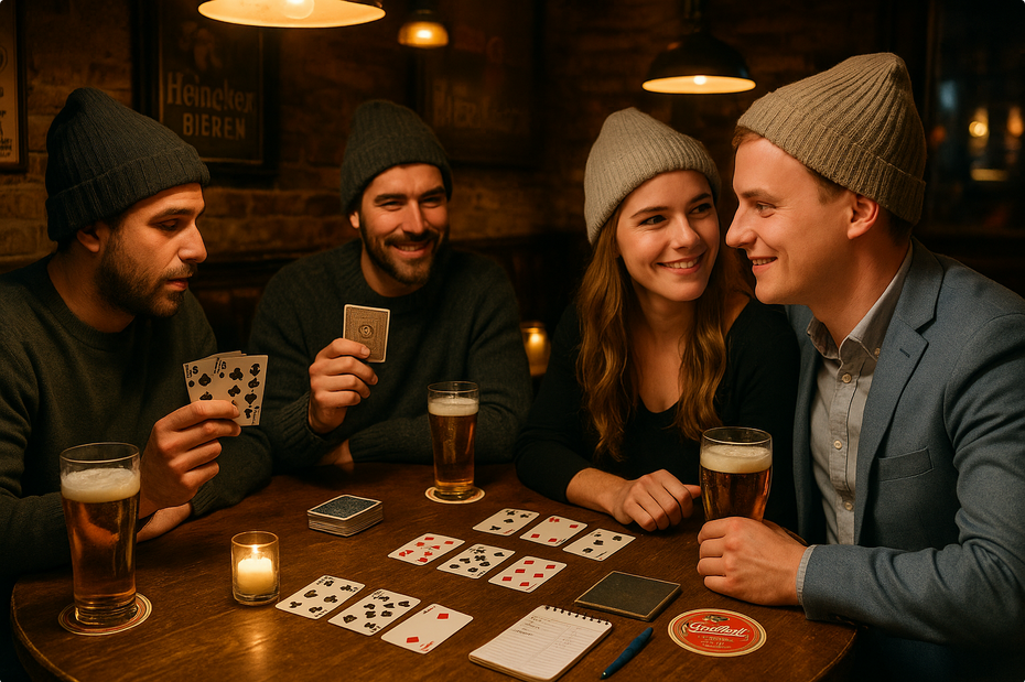 Toepen is een klassiek Nederlands kaartspel vol bravoure, bluf en scherpe timing. Het spel wordt meestal gespeeld met drie tot acht spelers en draait om het winnen van slagen. In elke ronde probeert men de hoogste kaart te spelen om de slag te pakken. Wie denkt sterk te staan, kan “toepen” roepen. Daarmee wordt de inzet verdubbeld en de spanning stijgt dus ook meteen. Spelers die twijfelen, kunnen passen en hun kans laten schieten. Elke speler begint met vier kaarten en de hoogste kaart in de slag wint. De speler die de laatste slag wint, verdient het punt. De kunst zit in het lezen van je tegenstanders: bluft iemand of heeft hij écht goede kaarten?
