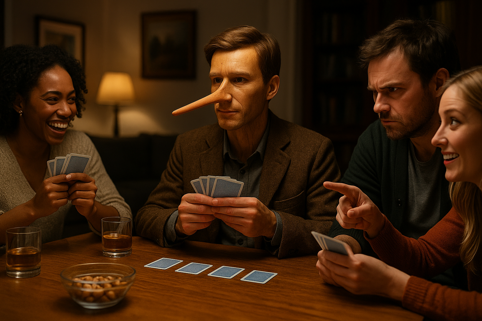 Iedereen mag beschuldigen: elke speler aan tafel mag onmiddellijk na een claim “je liegt” roepen. Bij simultaan roepen, krijgt de eerstvolgende in de zitvolgorde voorrang.