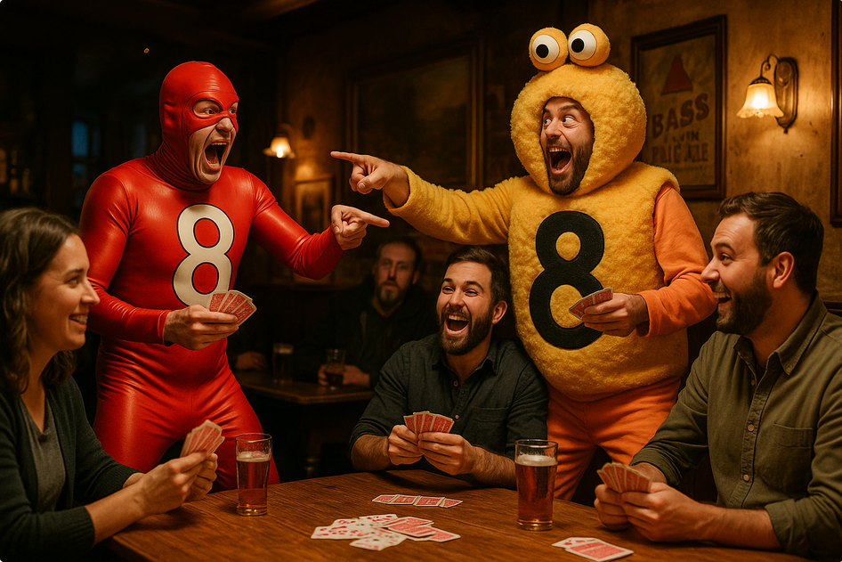 Crazy Eights is een kaartspel dat geschikt is voor twee tot zeven spelers en dat wordt gespeeld met een standaard kaartspel van 52 kaarten. De basisregel is eenvoudig: speel om de beurt een kaart die past bij de bovenste kaart op de aflegstapel, op basis van kleur of getal. De speler die als eerste zijn volledige hand heeft weggespeeld, wint de ronde. Speciale kaarten zoals de acht voegen een extra spelelement toe, want ze zijn altijd speelbaar en laten de speler de kleur veranderen. Andere kaarten zoals azen, boeren of tweeën kunnen optioneel speciale effecten hebben als er met varianten wordt gespeeld. Wie niet kan spelen, moet kaarten bijtrekken tot een geldige zet mogelijk is of tot de trekstapel op is. Het spel kent veel variaties, maar de basis blijft altijd herkenbaar.