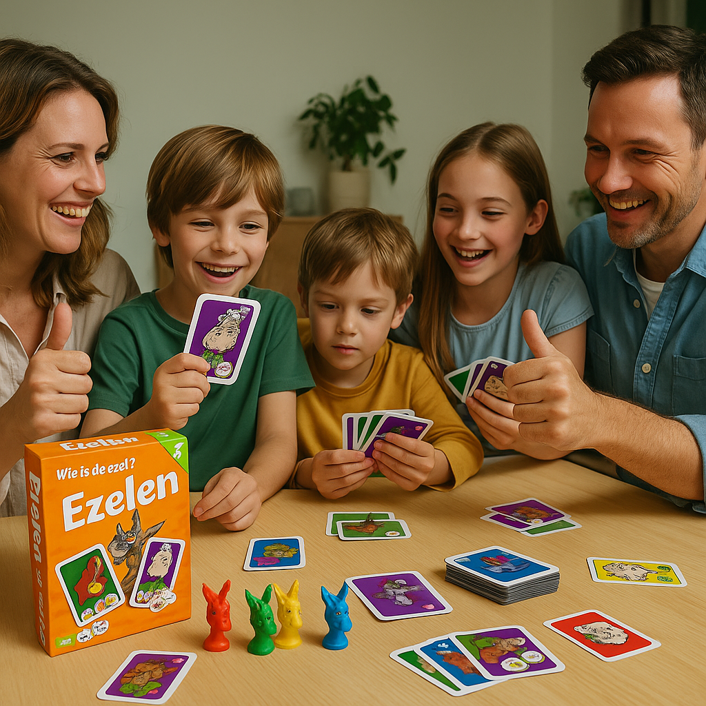 Ezelen is een populair kaartspel dat bekendstaat om zijn snelheid, spanning en humor. Het spel kan gespeeld worden met drie tot twaalf spelers en draait om het verzamelen van vier gelijke kaarten. Zodra een speler dit lukt, moet hij of zij onopvallend een vooraf afgesproken handeling uitvoeren, zoals het leggen van een duim op tafel of het pakken van een pion. De andere spelers moeten dit zo snel mogelijk nadoen. Degene die als laatste reageert, krijgt een strafpunt of letter en komt dichter bij de titel ‘ezel’. Ezelen is eenvoudig te leren en toch uitdagend.