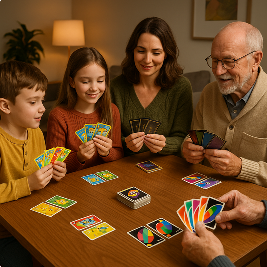 Er bestaan talloze varianten op het klassieke Four Colors of UNO. De basis blijft meestal gelijk: kleuren en cijfers matchen, actiekaarten inzetten en proberen als eerste je hand leeg te spelen. Toch bieden deze varianten soms extra interessante invalshoeken, thema’s en spelniveaus. Dat geeft het spel altijd een andere dimensie. Zo is UNO Flip een populaire versie waarin kaarten dubbelzijdig bedrukt zijn: met een speciale FLIP-kaart draai je het hele spel om naar de andere kant. UNO All Wild laat dan weer elke kaart fungeren als joker, wat leidt tot een bijzonder snel en onvoorspelbaar spelverloop. Voor liefhebbers van detail en afwerking is er UNO Deluxe, een luxe-editie met stevigere kaarten en een nette opbergdoos. Thema-varianten zoals UNO Pokémon combineren het klassieke spelprincipe met illustraties en kaarten die zijn geïnspireerd op populaire franchises. Daarmee spreekt het spel zowel strategen als verzamelaars aan.