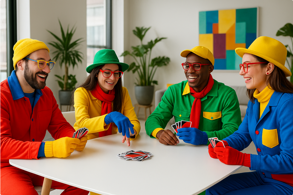 Four Colors is een kleurrijk kaartspel dat eenvoudig te leren is, terwijl het toch genoeg diepgang biedt voor strategisch spelplezier. Het is gebaseerd op het bekende UNO-principe, waarbij spelers kleuren en cijfers matchen om hun hand zo snel mogelijk leeg te spelen. Door speciale actiekaarten toe te passen, kun je het spelverloop beïnvloeden of je tegenstanders dwarsbomen.