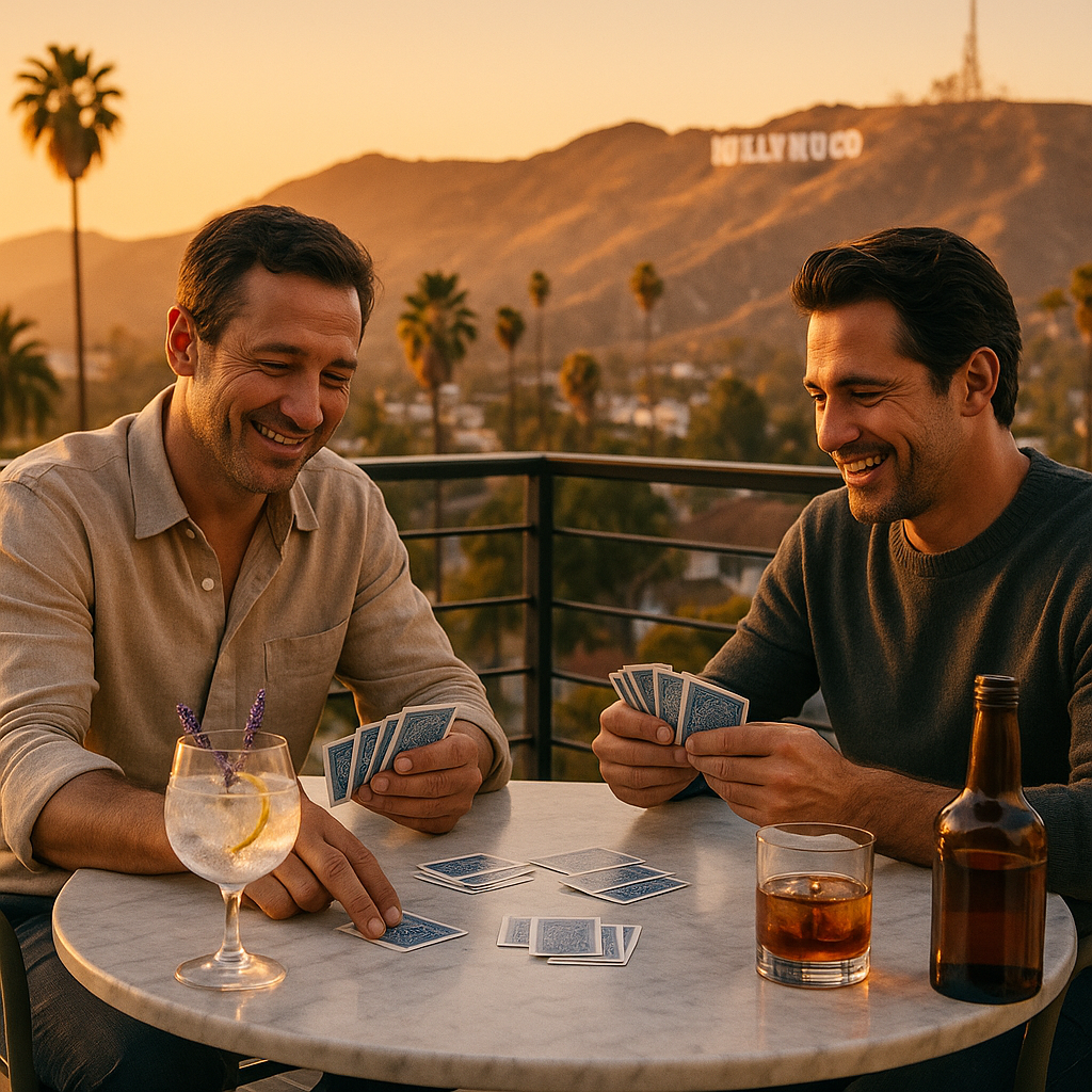 Hollywood Gin is een populaire variant van Gin Rummy waarin het spelverloop grotendeels gelijk blijft en vooral het scoresysteem sterk afwijkt. In plaats van één doorlopende puntentelling worden er tegelijk drie afzonderlijke spellen bijgehouden. De eerste gewonnen hand telt alleen voor spel 1, de tweede voor spel 1 + 2 en vanaf de derde overwinning tellen de punten mee in alle drie de spellen. Dit zorgt voor een strategische twist, want elke winst wordt exponentieel belangrijker. De basisregels zoals trekken, afleggen, kloppen en Gin blijven wel gewoon onveranderd, net als het vormen van melds en het reduceren van deadwood. Toch vereist Hollywood Gin een langere adem en tactisch vooruitdenken om over drie parallelle spellen te kunnen scoren. Naarmate de vermoeidheid toeslaat, staat er meer en meer op het spel. Het spel eindigt wanneer een speler in twee van de drie deelspellen de grens van 100 punten bereikt. Hollywood Gin is hierdoor enerzijds complexer, maar anderzijds ook spannender dan de standaardvariant Gin Rummy.