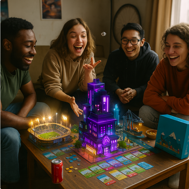 Iedere speler begint met dezelfde basis, maar kiest al snel een eigen groeipad. De dobbelstenen zorgen voor variatie, maar de juiste keuzes bepalen wie als eerste zijn stad voltooit.