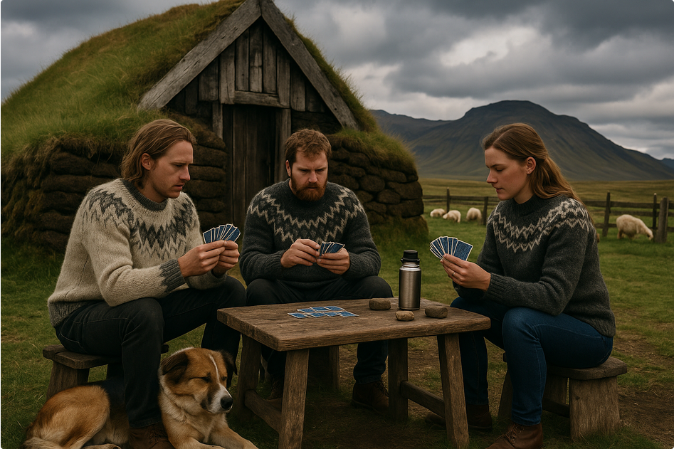 Manni is een traditioneel IJslands slagenspel voor drie spelers, dat zich onderscheidt door de unieke rol van een extra kaartenstapel: de "Manni". Het spel combineert elementen van klassieke slagenspellen zoals Whist en Spades met typische IJslandse innovaties, zoals wisselende contracten en strategische kaartenruil. Afhankelijk van het type contract proberen spelers zoveel mogelijk slagen te winnen of net te vermijden. Precies dat maakt Manni verrassend veelzijdig. Door de vele lokale varianten – zoals Hornafjarðarmanni, Trjámann en Laugavatnsmanni – is het spel in IJsland uitgegroeid tot een cultureel fenomeen.