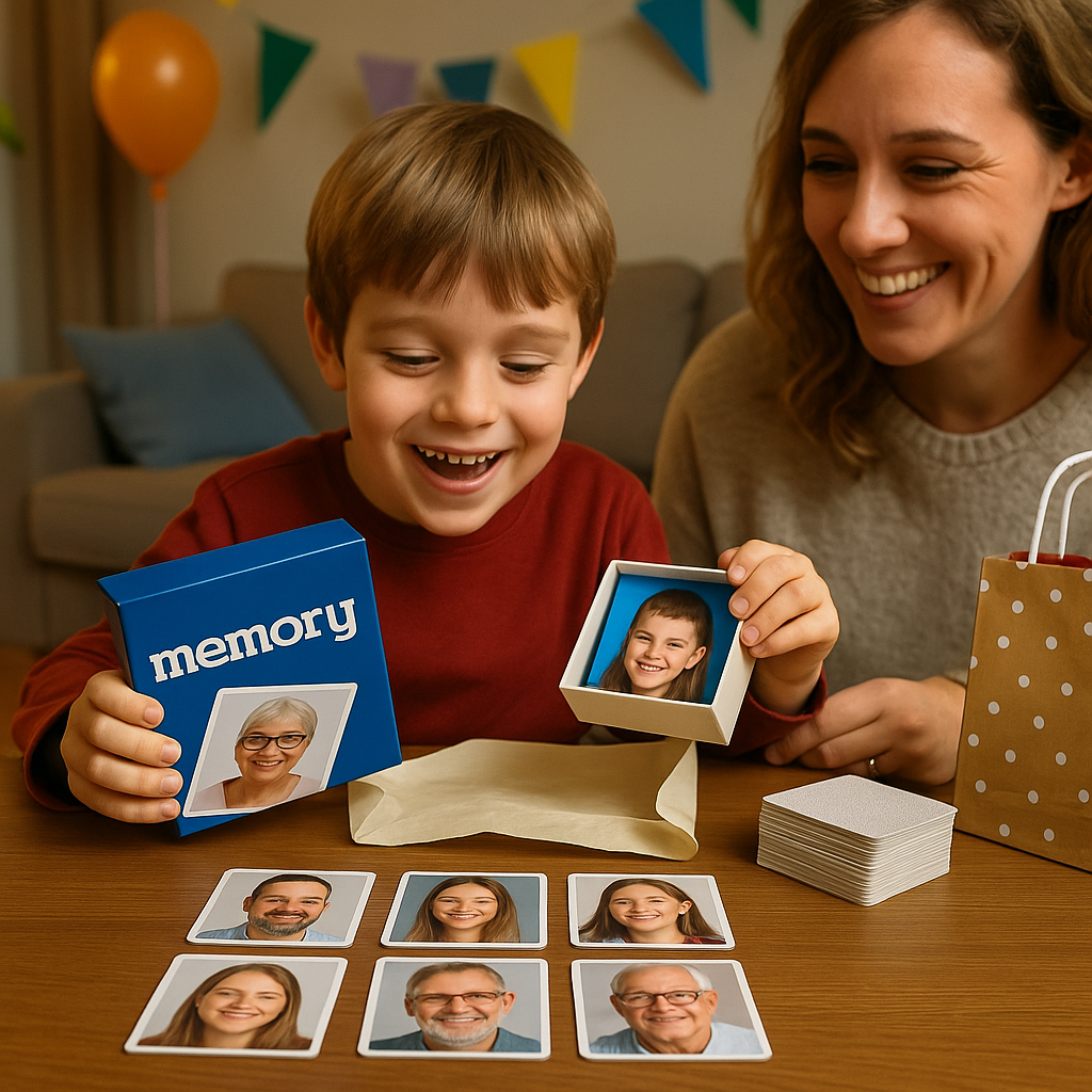 Naast de klassieke uitvoeringen bestaat ook de mogelijkheid om Memory te spelen met zelfontworpen kaarten. Hierbij worden persoonlijke foto’s of afbeeldingen gebruikt in plaats van standaardillustraties. Denk bijvoorbeeld aan familiefoto’s, vakantiekiekjes of afbeeldingen die passen bij een bepaald thema. Het resultaat is een unieke versie van het spel. Dit kan zowel een leuk gezelschapsspel als een herinneringsobject zijn. Hierbij wordt gekozen voor foto’s die in paren worden gedrukt, meestal op stevig en gelamineerd karton zodat ze lang meegaan. Het spel wordt geleverd in een compact doosje en leent zich uitstekend als origineel cadeau voor kinderen, vrienden of collega’s.