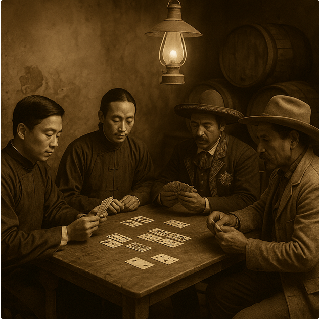 De precieze oorsprong van Rummy is onderwerp van discussie onder spelspecialisten. Er bestaan twee dominante theorieën: de eerste plaatst de oorsprong in Mexico rond de jaren 1890, met het spel Conquian als directe voorloper. Conquian werd gespeeld met een Spaans kaartspel van 40 kaarten en introduceerde het principe van het vormen van melds. De tweede theorie verwijst naar China, waar het spel Khanhoo, afgeleid van Mahjong-achtige kaartspellen, vergelijkbare spelmechanismen kende. Spelhistoricus David Parlett suggereert dat Conquian en Khanhoo nauw verwant zijn en dat Rummy voortkomt uit een samensmelting. Het mechanisme van kaarten trekken en afleggen om combinaties te vormen is in Chinese kaartspellen al vanaf de achttiende eeuw te vinden. In de twintigste eeuw ontstonden populaire varianten, zoals Gin Rummy, Canasta en Indiase Rummy.
