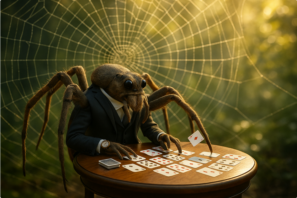 De 4 Suits-variant is de moeilijkste vorm van Spider Solitaire. Hier worden alle vier de kleuren gebruikt, waardoor het bouwen van volledige reeksen in dezelfde kleur aanzienlijk lastiger wordt. Elke verkeerde zet kan leiden tot langdurige blokkades, vooral wanneer kaarten van verschillende kleuren in dezelfde reeks belanden. Het verplaatsen van kaarten vereist vaak meerdere tussenstappen, waarbij lege kolommen van onschatbare waarde zijn om grote groepen kaarten tijdelijk te verplaatsen. Deze variant vraagt niet alleen om inzicht in het vrijspelen van kaarten, maar ook om geavanceerd plannen en geduld. Het is een echte hersenbreker. Er is minder ruimte voor fouten en het speltempo ligt doorgaans lager door de hogere complexiteit.