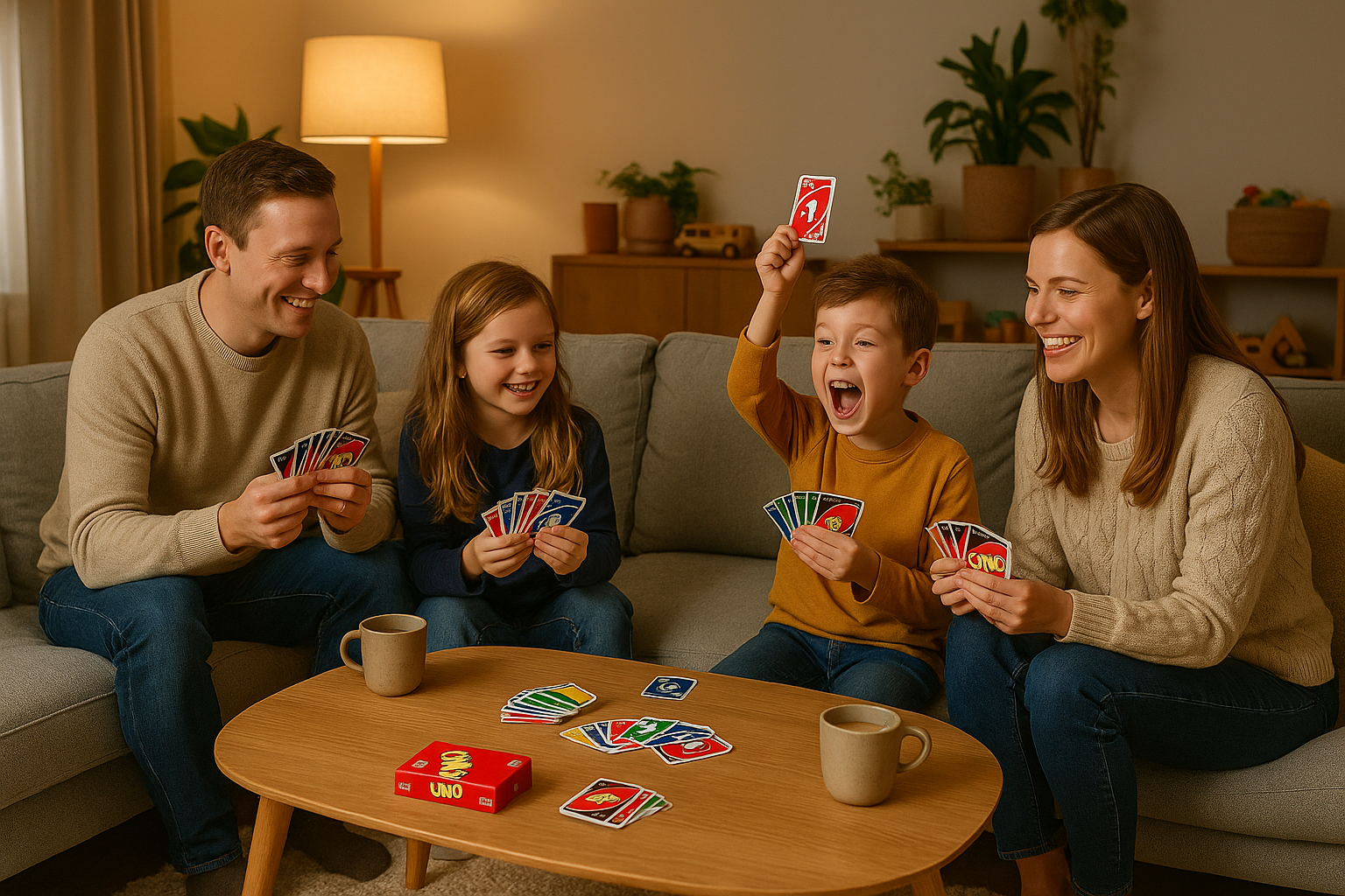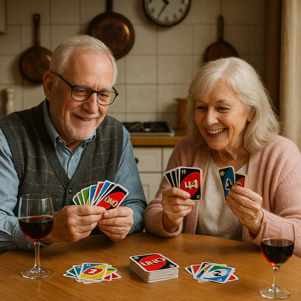 Uno is een kaartspel waarbij spelers om beurten kaarten wegspelen door kleur of cijfer te matchen, met strategische actiekaarten om elkaar dwars te zitten.