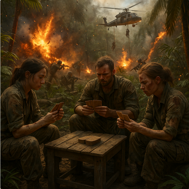 De speler draait zijn laatste kaart direct open, zonder eerst gesloten kaarten te leggen. Deze kaart wordt gebruikt om de oorlog te beslissen.